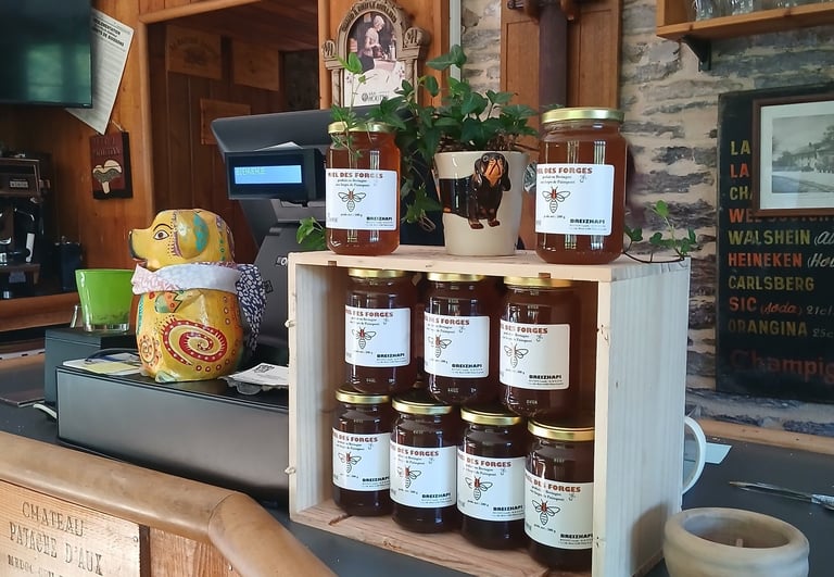 ce miel est produit à partir d'un rucher sur le site des forges de Paimpont et est vendu en exclusivité au restaurant des forges .